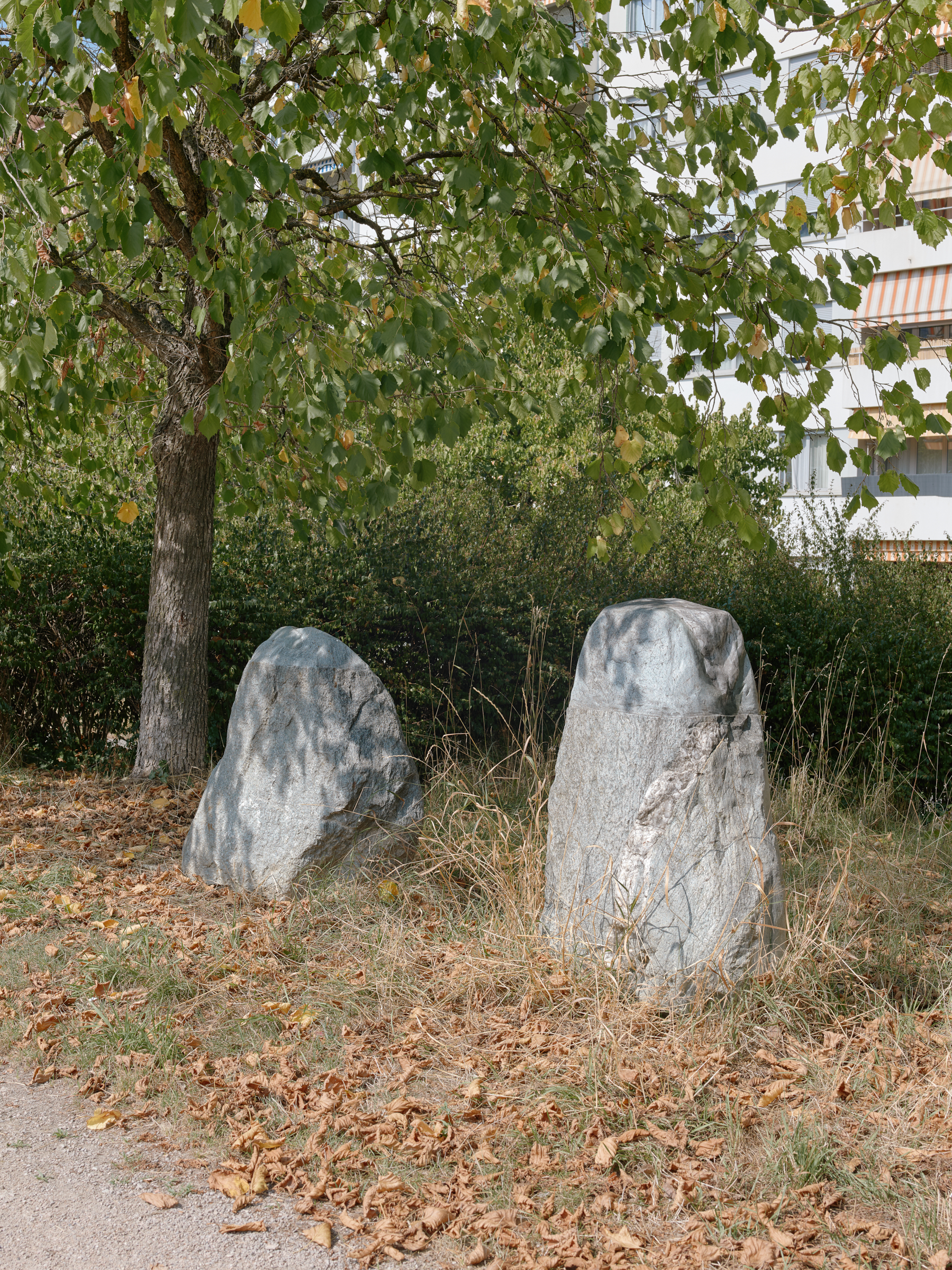 Depuis l’exposition éponyme en 2016 à Halle Nord à Genève, l’installation n’avait pas été remontrée. Entrée dans la collection de Lancy, elle est désormais à Palettes, là d’où la Nationale 7 partait direction Marseille. Clin d’oeil pour rappeler le lien entre le RPN (Repère des Pierres du Niton) – que représentent les deux sculptures – et le marégraphe marseillais qui a permis de répertorier le niveau de la mer en Suisse pour calculer les hauteurs des montagnes. Un grand merci à Nicole Kunst, au service de la culture et à la ville de Lancy.